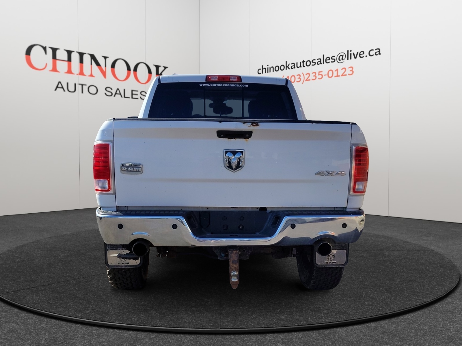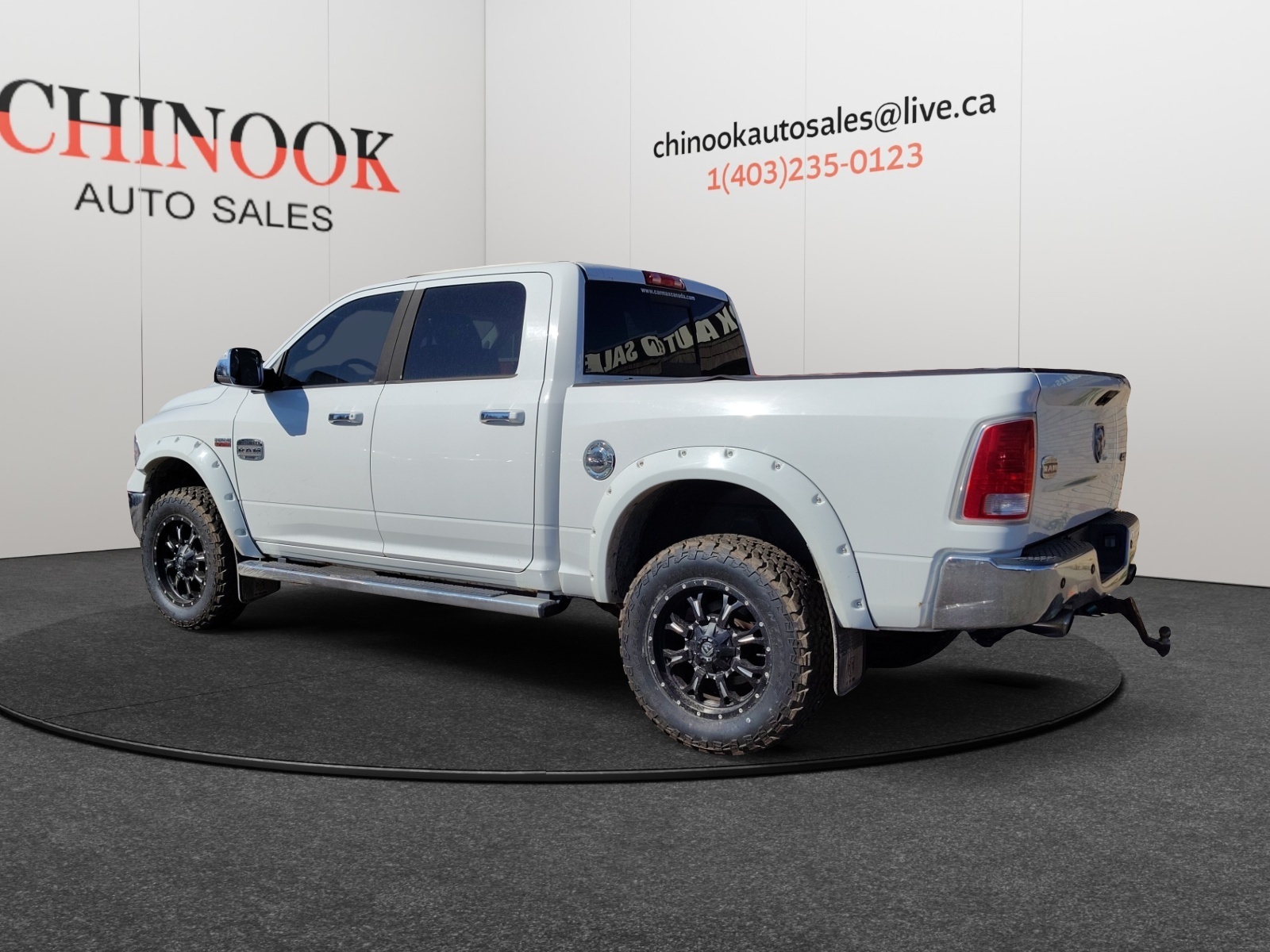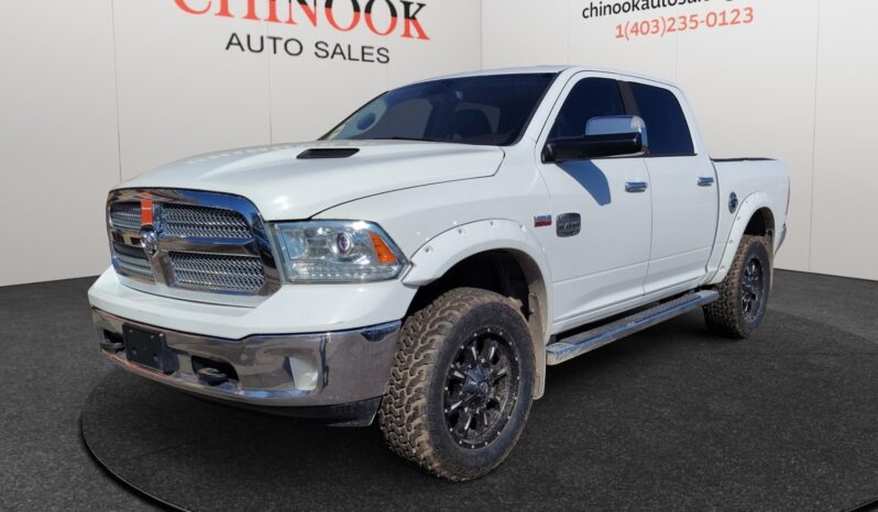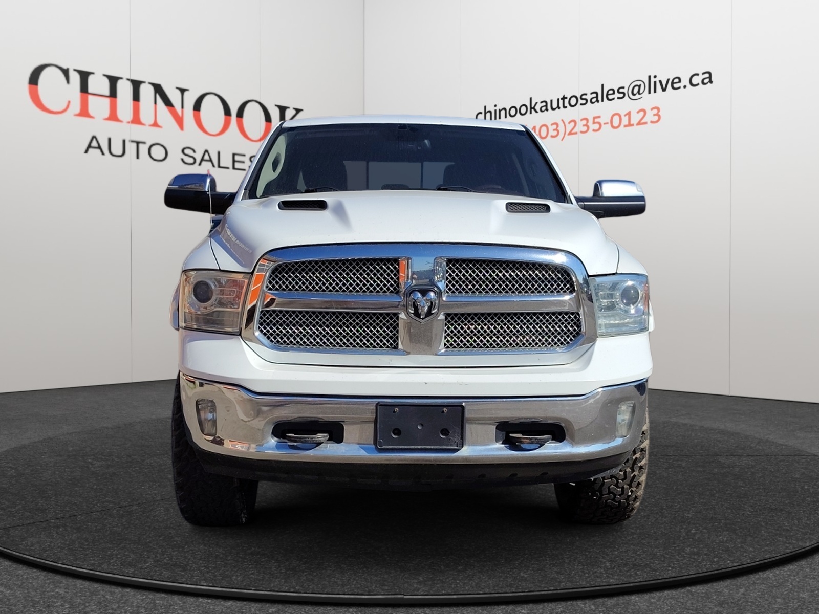 This used 2013 Ram 1500 Laramie with the 5.7L Hemi V8 engine is a luxurious, powerful, and modern full-size pickup truck known for its comfortable cabin and strong performance, offering 395 horsepower, paired with an 8-speed automatic transmission and a rotary shifter. Key features include a chrome grille, 20-inch wheels, leather-faced seats, heated steering wheel, a 7-inch vehicle information center, and dual-zone automatic temperature control.