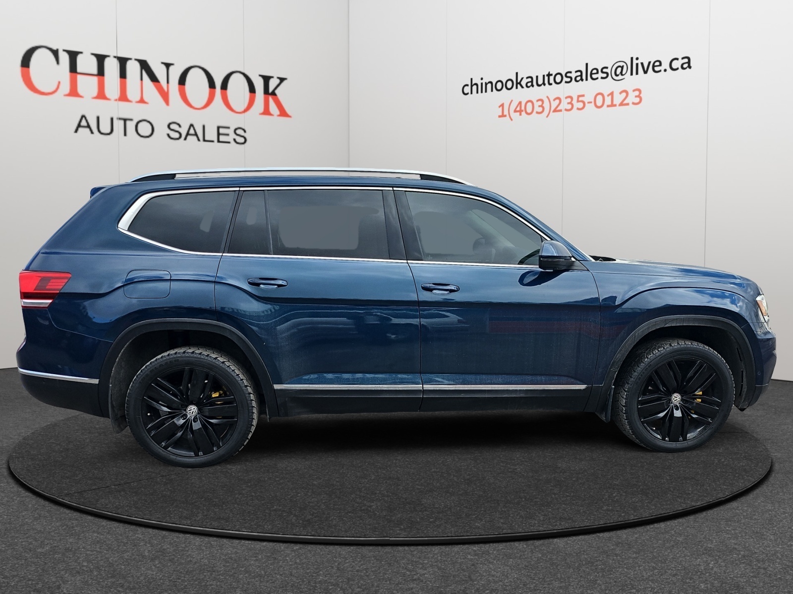 This used VW Atlas Highline is great 7 passenger family vehicle that comes with AWD, leather heated and cooled seats, heated steering and keyless entry remote starter, back up camera, premium sound by Fender, panoramic roof. This is Alberta active vehicle!