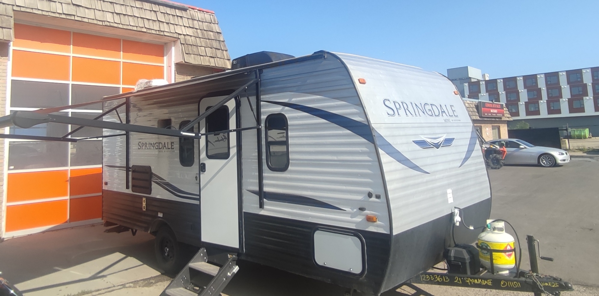 2021 Springdale by Keystone is. 17' bumper pull used trailer is in excellent condition. Has a double bed in the front with a new mattress and two single over single bunk beds. Refrigerator, microwave, electric and gas water heater and air conditioning, gas stove. Bathroom comes with toilet, sink and shower cabin. Power awning with LED lights.