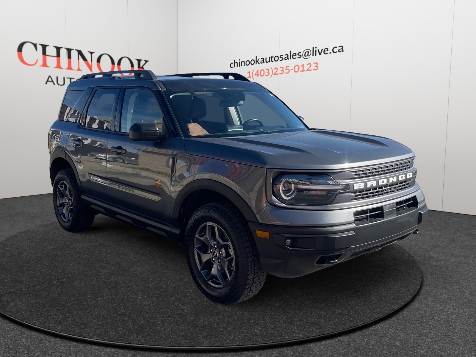 This used 2023 ford bronco with 4 wheel drive, 4 cylinder engine, with automatic transmission Touchscreen Media Display, Apple CarPlay and Android Auto smartphone integration, - Navigation System - Bluetooth Connectivity - Back-Up Camera - Push-Button Start - Remote Keyless Entry - A/C with Dual-Zone Climate Control - Heated Front Seats - Brown-Leather Seats - steering wheel with heating deede- Cruise Control - Traction Control You can call us (403)235-0123, e-mail us [email protected] to schedule a time to come and see it at 2011 50th st S.E. Calgary, Alberta! You can also go to www.chinookautosales.com to view similar inventory!!! 1861909 Alberta Ltd. o/a Chinook Auto Sales is AMVIC licensed dealer!!
