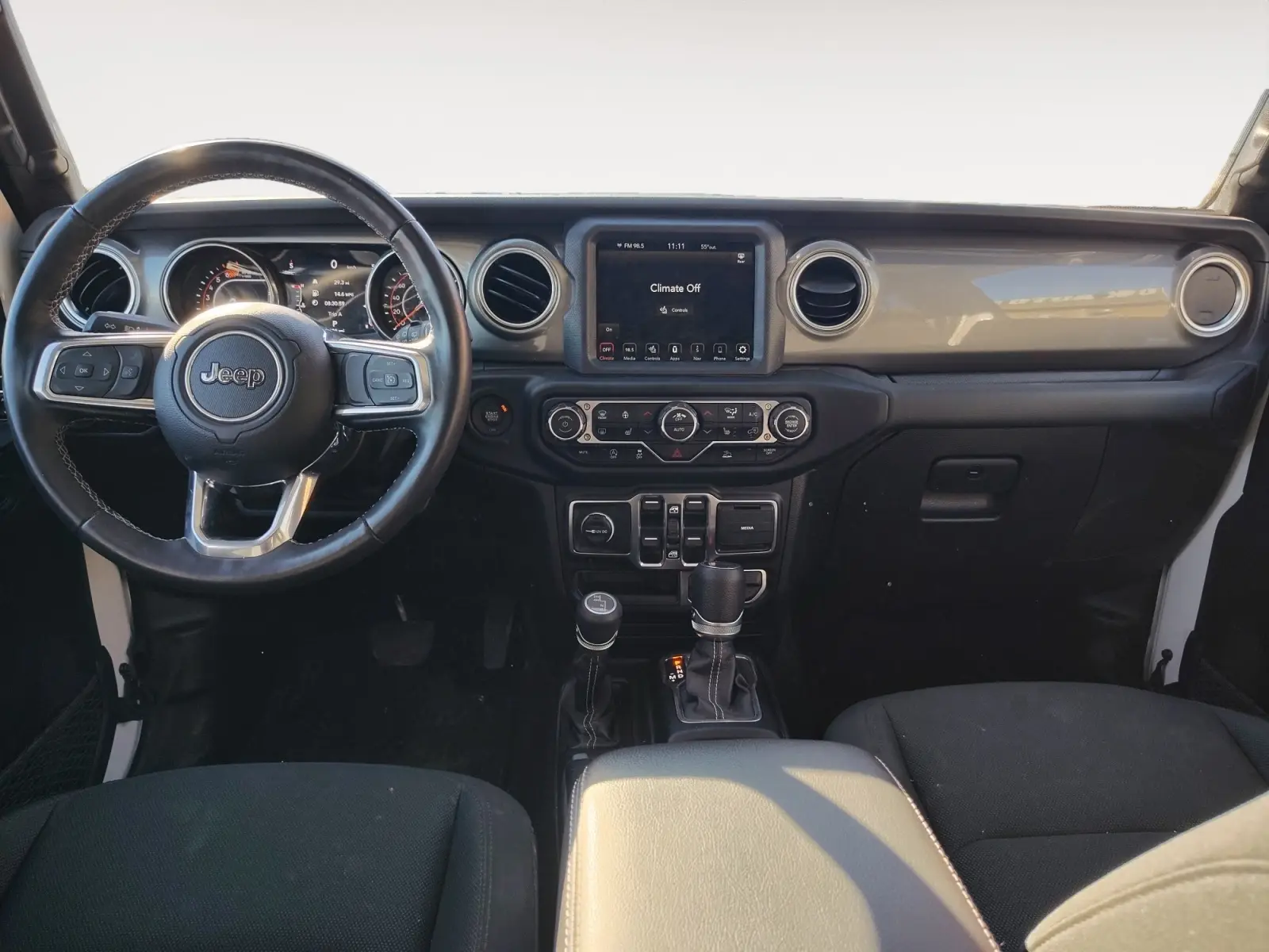 Apple CarPlay, Bluetooth, satellite radio, and a Wi-Fi hotspot, climate control, heated leather seats, and heated steering wheel, round LED headlights.